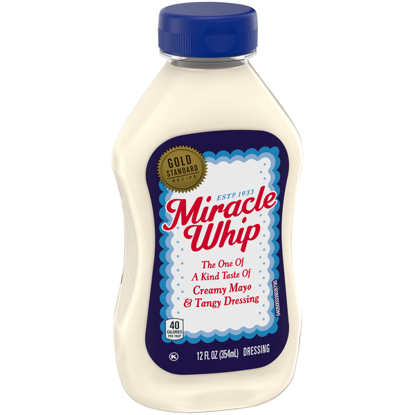 MIRACLE WHIP | Kraft Heinz Foodservice Canada - Products KRAFT MIRACLE WHIP 18ml 200 MIRACLE WHIP Spread has an unmistakeable unique taste with its tangy zip. Can be added to salads, sandwiches, dips and has 64% less fat than mayonnaise. KRAFT MIRACLE WHIP 3.78L 2 MIRACLE WHIP Salad Dressing enjoys the widest customer recognition and acceptance of any salad dressing.
