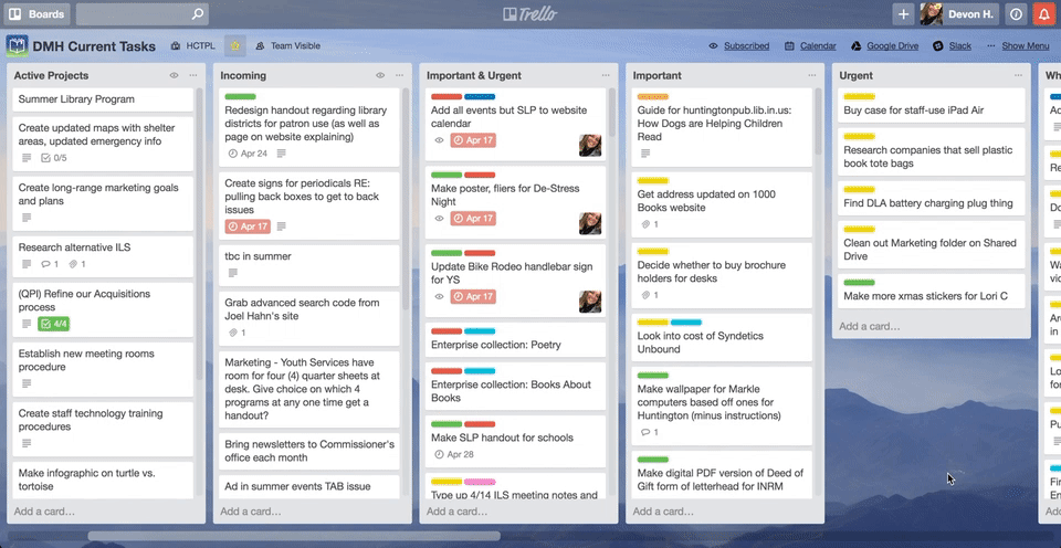 › software › trelloTrello | Atlassian From startups to Fortune 500 companies, Trello is the visual way for teams to collaborate on any project Information at a glance See the big picture, or dive into the details, all on one Trello board. Everyone knows the status of tasks as cards move across lists to Done. Organize the essential info from all your apps with Power-Ups. Trello: Manage Team Projects - Apps on Google Play VerkkoTrello helps teams move work forward. Trello is the flexible work management tool that empowers all teams to plan, track, and accomplish their work, their way. Whether you’re planning a website... How Trello labels can organize, categorize, and prioritize cards Get Trello from the Microsoft Store VerkkoLIFEHACKER With Trello you can: • Create boards to organize anything you're working on • Use them solo or invite coworkers, friends and family to collaborate • Customize workflows for different projects • Add checklists of "To-Dos" on cards • Assign tasks to yourself and coworkers • Comment on items with your friends • Upload photos and …