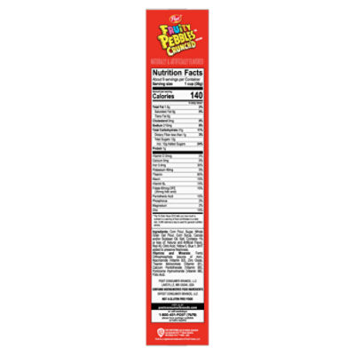 Fruity pebbles nutrition label. Fruity pebbles Nutrition Facts - Eat This Much Fruity pebbles Cereals ready-to-eat, post Find on Amazon Percent calories from... Quick stats 160.8 Calories 34.4g Carbs (34.1g net carbs) 1.6g Fat 1.8g Protein Estimated $0.17 calories I like to eat Try these: Egg Note: Any items purchased after clicking our Amazon buttons will give us a little referral bonus. If you do click them, thank you! Post PEBBLES Cereal Flavors: 40+ Years Making Breakfast Rock Since 1971, Flinstones-inspired PEBBLES cereal varieties like Cocoa PEBBLES and Fruity PEBBLES have been capturing the hearts of all age groups and bringing joy to breakfast-time. Its delicious flavors, crispy crunchy rice, and iconic characters all come together to create a timeless, classic cereal. Not only is PEBBLES cereal a breakfast favorite, it's also a popular secret ingredient to a variety of dessert recipes. Fruity Pebbles Nutrition Facts & Calories - inlivo.com KEY FACTS. Have high calorie density - this means that the amount of calories you are getting from ... Why You Should Think Twice About Eating Fruity Pebbles Apr 9, 2021 · The Daily Meal article mentions that within Fruity Pebbles' main ingredients, after rice comes sugar and hydrogenated vegetable oil. This breakfast option also offers very little protein, fat, or fiber in a full serving, while on the opposite end loading in a remarkable amount of carbs (23g to be exact).