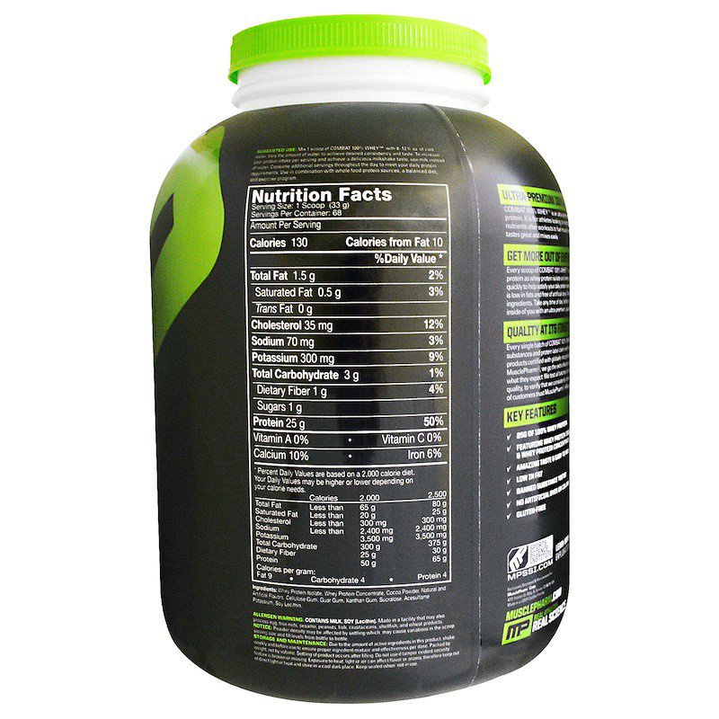 Calories in Muscle Pharm Combat Protein Powder and Nutrition Facts Feb 10, 2021 ... There are 140 calories in 1 scoop (35 g) of Muscle Pharm Combat Protein Powder. Get full nutrition facts for other Muscle Pharm products and ... Calories in MusclePharm Combat Protein Powder, Chocolate Milk Nutritional Information, Diet Info and Calories in. Combat Protein Powder, Chocolate Milk from MusclePharm ; Vitamin A 0% · Vitamin C 0% ; Calcium 12% · Iron 2% ...