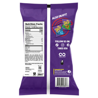 Takis Nutrition Facts, Ingredients, Are Takis Bad For You? Takis Nutrition Facts Nutrition Facts servings per container Serving size 1 oz ( 28g / about 12 pieces) Amount per serving Calories 140 % Daily Value* Total Fat 8g 10% Saturated Fat 2g 10% Trans Fat 0g Cholesterol 0mg 0% Sodium 410mg 18% Total Carbohydrate 17g 6% Dietary Fiber 1g 4% Total Sugars 1g Includes 0g Added Sugars 0% Protein 2g Can Dogs Eat Takis And What Happens If They Do? - PetDT Therefore, they should not eat more than 1,750 calories a day. Now, let's consider how many Takis make up a labrador's caloric intake per day. Takis Fuego and Outlaw chips contain 230 calories. This makes up 13% of a labrador's daily intake. Takis Xplosion flavored chips contain 250 calories which make up 14% of a labrador's daily intake. Are Takis Chips Bad for You? - Healthline Takis are high in calories, fat, carbs, and sodium but lack other essential micronutrients. A 1-ounce (28-gram) package of Takis Fuego contains the following nutrients ( 1 ): Calories: 140... Takis (snack) - Wikipedia Takis are a Mexican brand of rolled corn tortilla chip snack made by Barcel, a subsidiary of Grupo Bimbo. Fashioned after the taquito, it comes in numerous flavors, [1] [2] the best selling of which is the chili-lime "Fuego" flavor, sold in distinctive purple bags.
